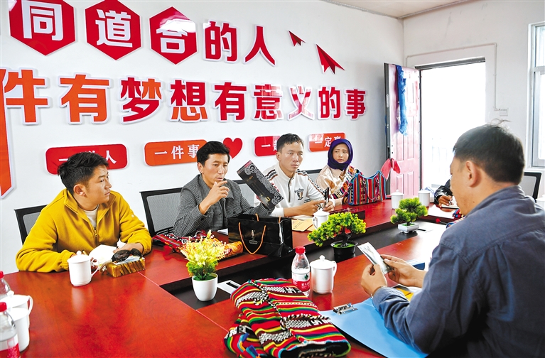 那曲市安多縣的大學(xué)畢業(yè)生倉秋多吉聯(lián)合6人創(chuàng)業(yè),于2021年創(chuàng)辦了安多托尕爾倉游牧產(chǎn)業(yè)有限責(zé)任公司。公司搭建了民族手工藝產(chǎn)品、土特產(chǎn)銷售平臺,在當(dāng)?shù)卣畠?yōu)化營商環(huán)境政策的支持下,創(chuàng)業(yè)團(tuán)隊(duì)逐步擴(kuò)大,帶動(dòng)了當(dāng)?shù)剞r(nóng)牧民產(chǎn)業(yè)興旺?!D為倉秋多吉(左二)和團(tuán)隊(duì)核心成員商討產(chǎn)品銷售提升策略。(資料圖片) 新華社記者 張汝鋒 攝