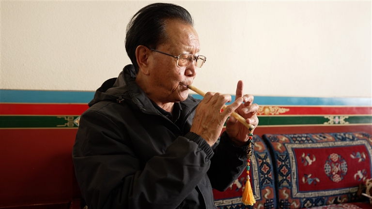 如今在西藏,不僅有像次旦這樣的非遺傳承人堅守著鷹笛文化的傳承火種,還有那曲市藝術團、西藏自治區(qū)歌舞團、西藏大學藝術學院三處鷹笛傳習基地。鷹笛作為藏族古老的吹奏樂器,歷史悠久,曾輝煌一時,如今卻瀕臨消逝。其獨特的構造、優(yōu)美的音色、強烈的藝術表現力以及眾多獨特演奏技巧,在歷代音樂人的傳承下得以延續(xù),次旦和玉古先生成功申報非物質文化遺產傳承人便是有力見證。