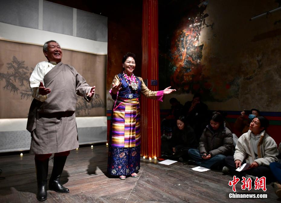 12月23日晚,西藏拉薩吉本崗藝術(shù)中心舉行吉光之夜活動。朗瑪堆諧、扎木念彈唱、熱巴舞等非遺展演,吸引眾多民眾共同領(lǐng)略西藏非物質(zhì)文化遺產(chǎn)的無窮魅力。圖為扎木念彈唱《阿里札達民歌隆巴》。中新社記者 李林 攝