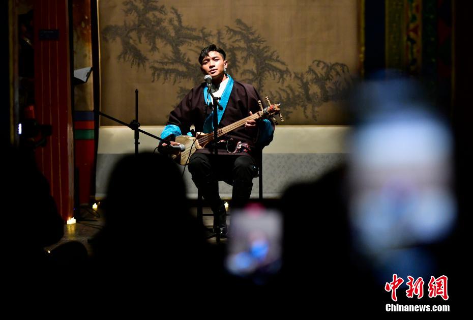 12月23日晚,西藏拉薩吉本崗藝術(shù)中心舉行吉光之夜活動。朗瑪堆諧、扎木念彈唱、熱巴舞等非遺展演,吸引眾多民眾共同領(lǐng)略西藏非物質(zhì)文化遺產(chǎn)的無窮魅力。圖為扎木念彈唱《阿里札達民歌須彌山》。中新社記者 李林 攝
