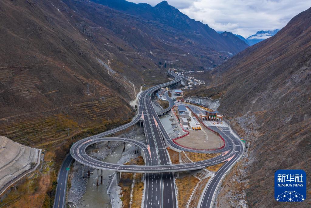 這是2020年12月20日拍攝的汶馬高速桃坪互通(無人機照片)。新華社發(fā)(阿壩州委宣傳部供圖)