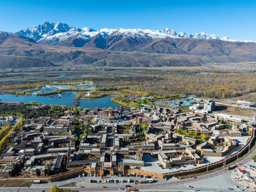 這是2024年10月29日拍攝的四川省甘孜州甘孜縣的格薩爾王城(無人機(jī)照片)。新華社記者 沈伯韓 攝