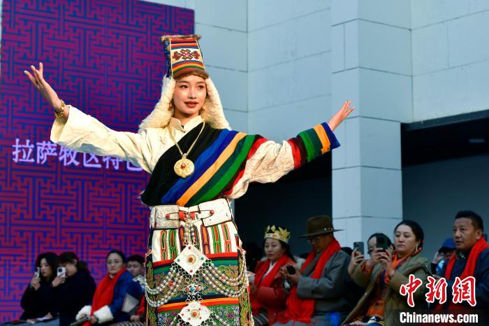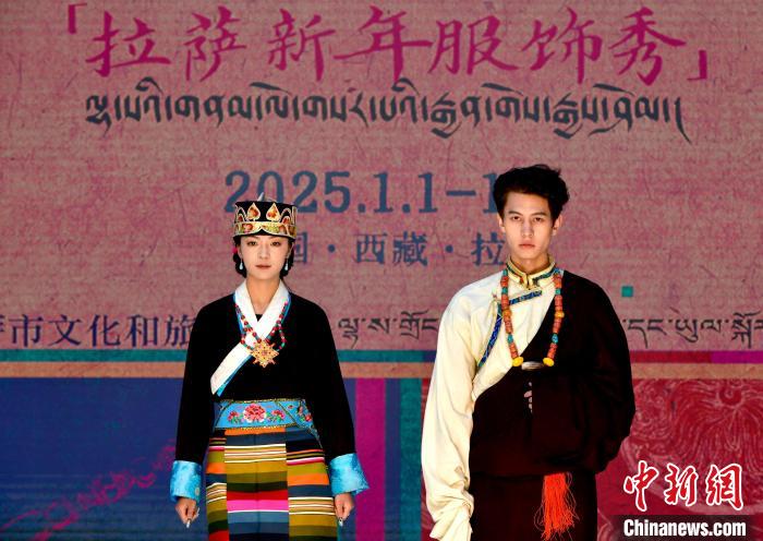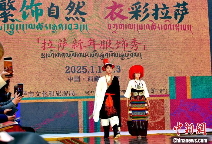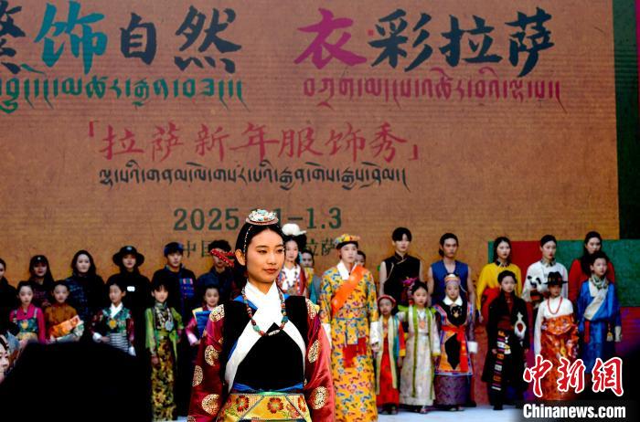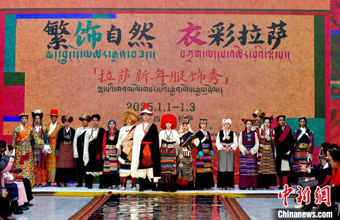 1月1日,西藏拉薩市文化和旅游局舉辦“繁飾自然·衣彩拉薩”新年服飾秀開幕大秀,通過拉薩代表性傳統(tǒng)服飾秀、少兒服飾秀、西藏元素創(chuàng)新服飾秀三部分展現藏地風情的同時,展現拉薩傳統(tǒng)與現代服飾文化的風采。圖為拉薩新年服飾秀現場。中新社記者 李林 攝