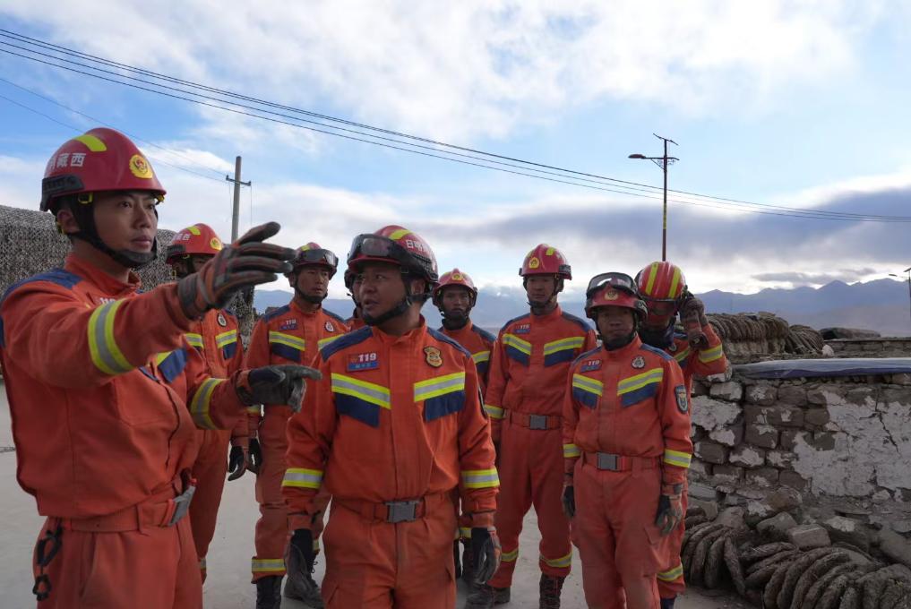 1月7日,救援人員在定日縣長所鄉(xiāng)古榮村展開救援。
