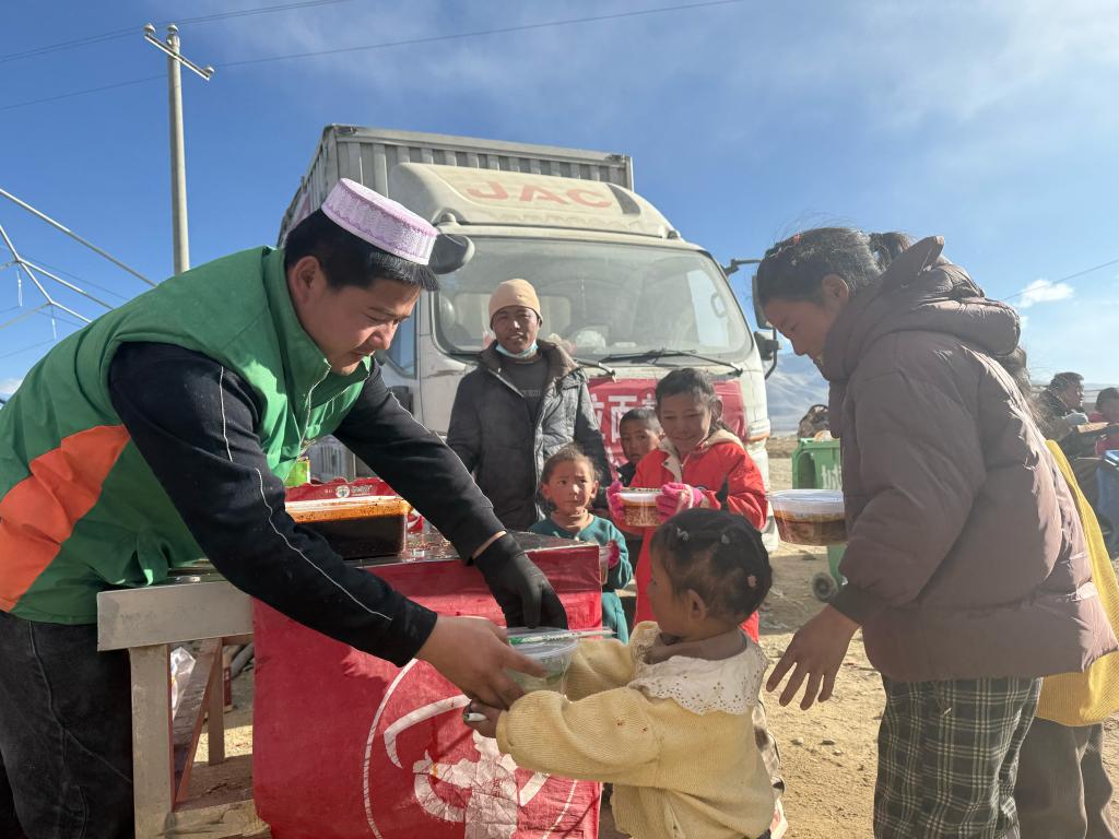 西藏定日6.8級地震發(fā)生后第二天,看到地震的消息,馬杰和朋友立馬帶上物資奔赴災(zāi)區(qū)救援一線。一行5人從甘肅臨夏出發(fā),驅(qū)車2700多公里,10日到震中后便開始給受災(zāi)群眾免費做拉面。