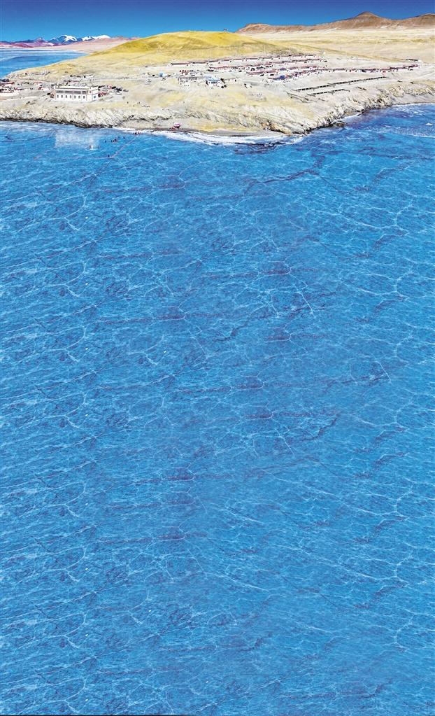 活動在浪卡子縣打隆鎮(zhèn)推瓦村舉辦。普莫雍錯冬季封凍后,會形成如夢如幻的幽藍冰面,因此被贊譽為“中國貝加爾湖”。每年2月前后,當湖面完全冰封,推瓦村村民便會集結羊群,趕著它們踏上冰面,前往湖心島過冬,這一延續(xù)千年的冰上趕羊傳統(tǒng),承載著深厚的歷史文化底蘊。