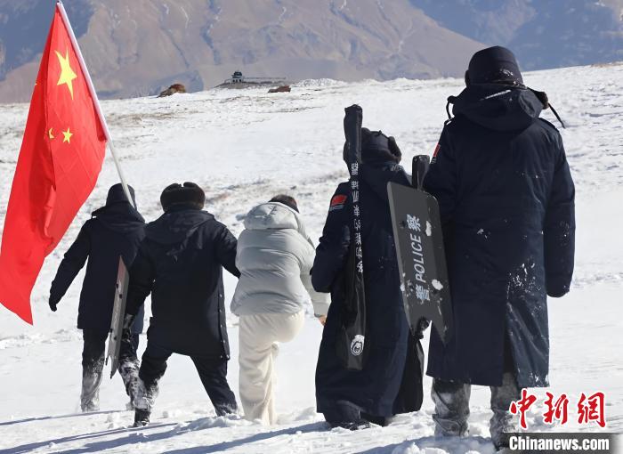 在元宵節(jié),李嘉興執(zhí)意要跟隨丈夫體驗(yàn)一次巡邊。因此,此次巡邏隊(duì)伍中,不僅有經(jīng)驗(yàn)豐富的老警員,也有初到高原的新警,更有這位初來乍到的警嫂。大家手拉著手,踩著厚厚的積雪艱難前行,途中還不時(shí)互相提醒小心腳下,注意安全。