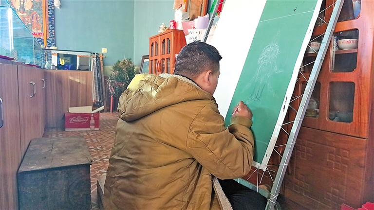 “那段時間是最難熬的,每天睜開眼除了吃飯,其他時間都在畫畫?!甭遄犯嬖V記者,當(dāng)他真正開始學(xué)習(xí)時,才深刻體會到要想成為唐卡手藝人,需要付出更多努力。“也曾想過放棄,但還是咬咬牙堅持了下來?!闭f到這里,洛追有些靦腆地笑了笑。