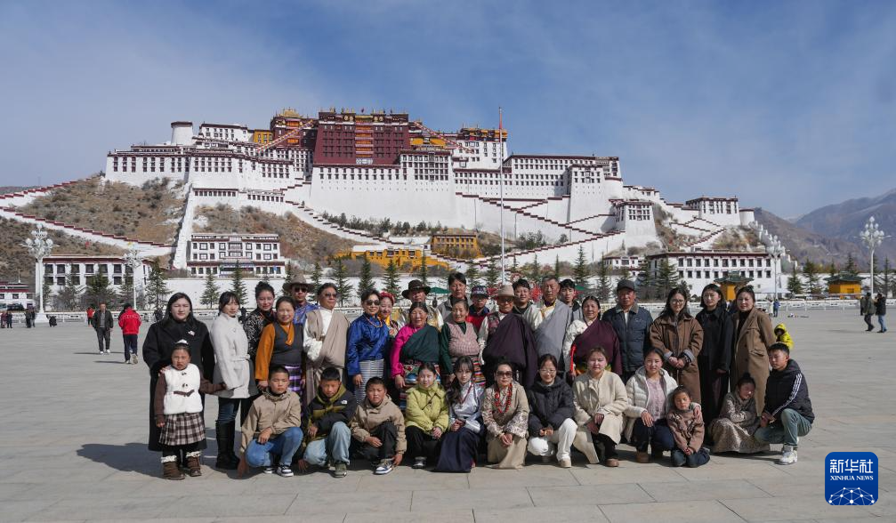 2月28日,來自西藏那曲市比如縣的一家人在拉薩布達(dá)拉宮前合影留念。