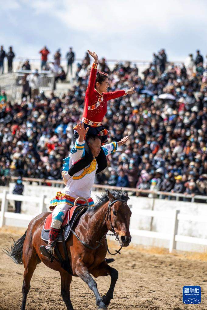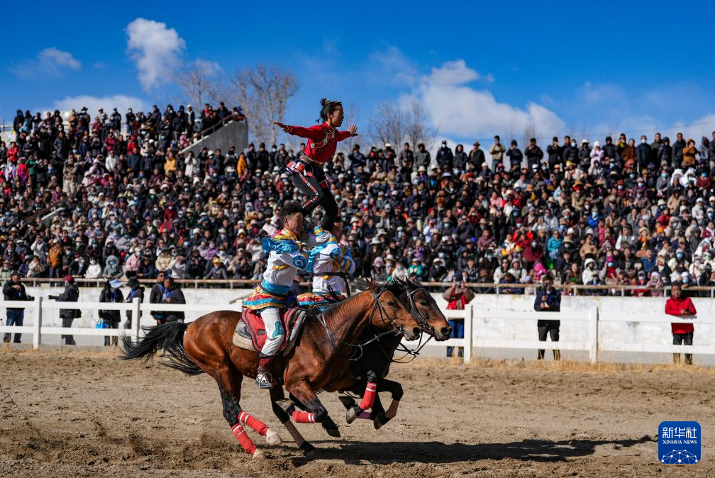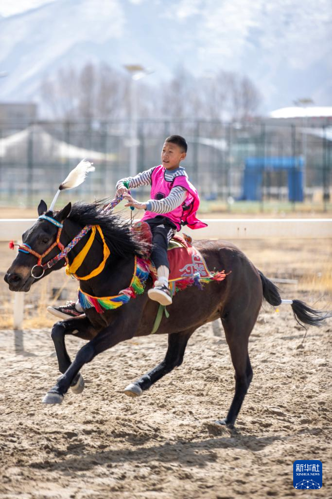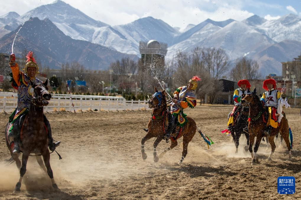 3月2日,馬術(shù)隊員在表演傳統(tǒng)馬術(shù)項目。新華社記者 晉美多吉 攝