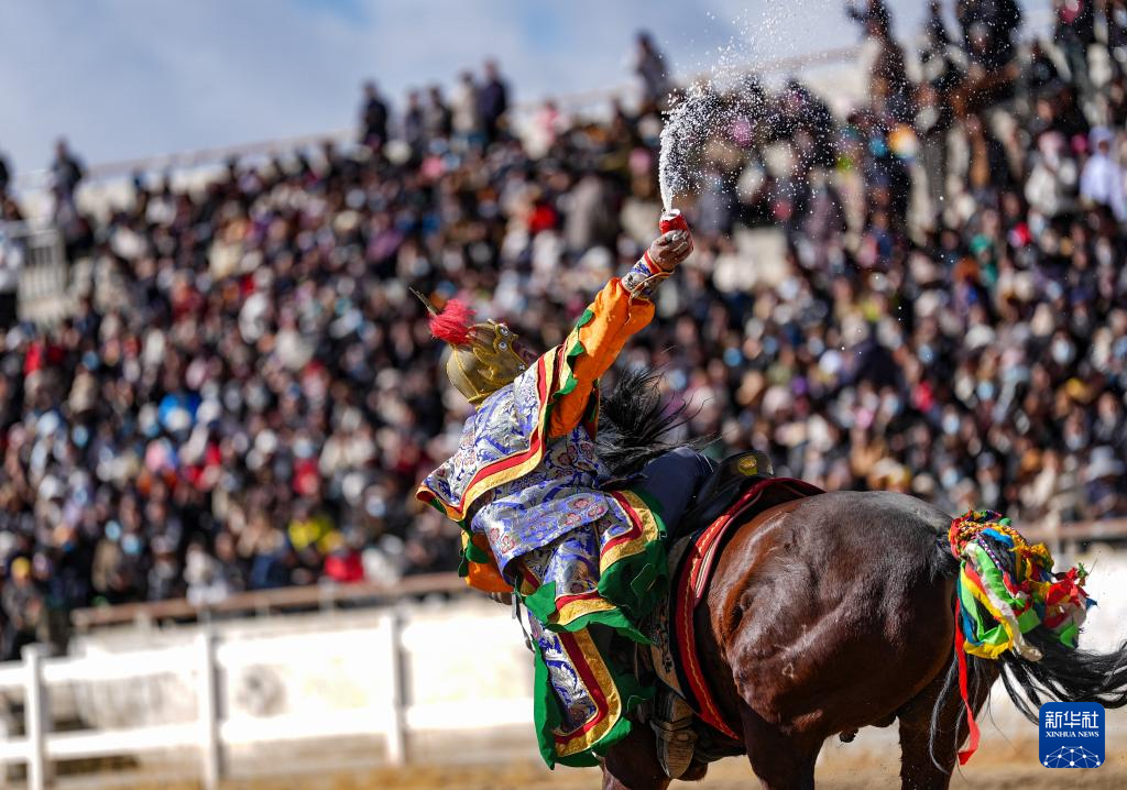 當(dāng)日,2025年藏歷新年初三民族傳統(tǒng)馬術(shù)表演暨民族賽馬活動在拉薩市北郊賽馬場舉行。馬術(shù)在西藏是吉祥、勇敢和智慧的象征。騎手們用精彩表演為觀眾送上新年的祝福。