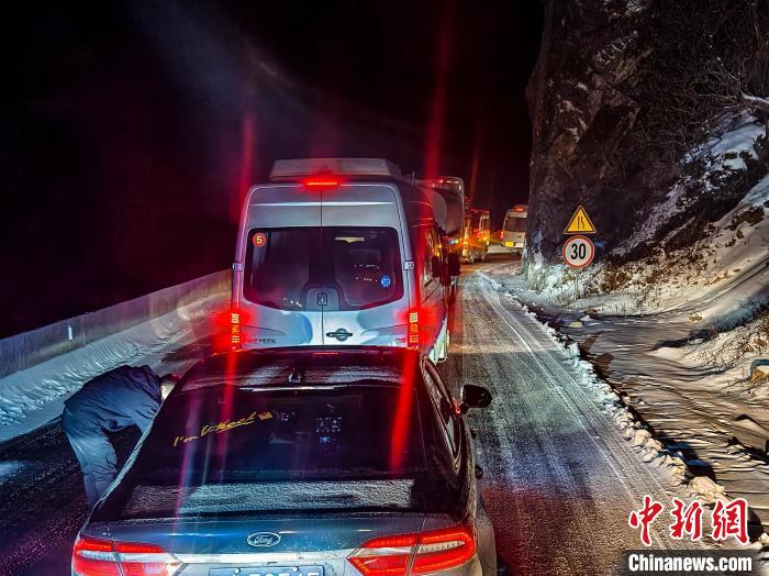 當夜幕降臨之時,大風夾著雪粒呼嘯不止,山上的氣溫也越來越低,部分司乘人員出現焦慮,官兵們一邊耐心地安撫司乘人員焦急的情緒,一邊有條不紊地指揮車輛緩緩挪動。