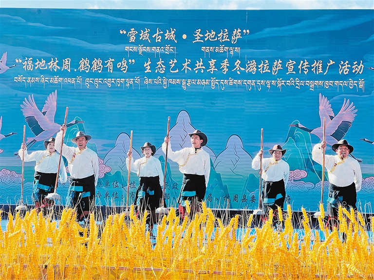 當溫暖的陽光輕柔地灑在拉薩河谷,黑頸鶴清脆的鳴叫聲喚醒了林周濕地寧靜的清晨。“福地林周·鶴鶴有鳴”生態(tài)藝術共享季之“冬游拉薩”宣傳推廣活動,以歌舞表演、生態(tài)主旨演講、黑頸鶴攝影作品展、鶴文化專家座談等,融合了生態(tài)、藝術與文化的盛宴,讓人在雪山、湖泊與鶴影交織的詩意中,感受“冬游拉薩”的獨特魅力。