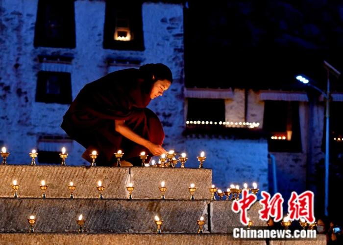 2024年12月24日即藏歷十月二十四日,是藏傳佛教格魯派傳統(tǒng)宗教活動(dòng)“色拉協(xié)曲”。為紀(jì)念色拉寺創(chuàng)建人釋迦也失,西藏拉薩色拉寺內(nèi)點(diǎn)燃酥油燈。 中新社記者 李林 攝