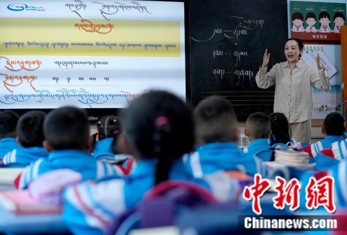 2025年3月10日,拉薩市第一小學(xué)藏語文老師桑旦旺姆在課堂上講課。當(dāng)日,西藏拉薩市春季學(xué)期開學(xué),各項(xiàng)教學(xué)工作有序開展。中新社記者 李林 攝