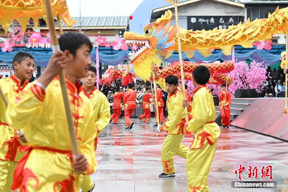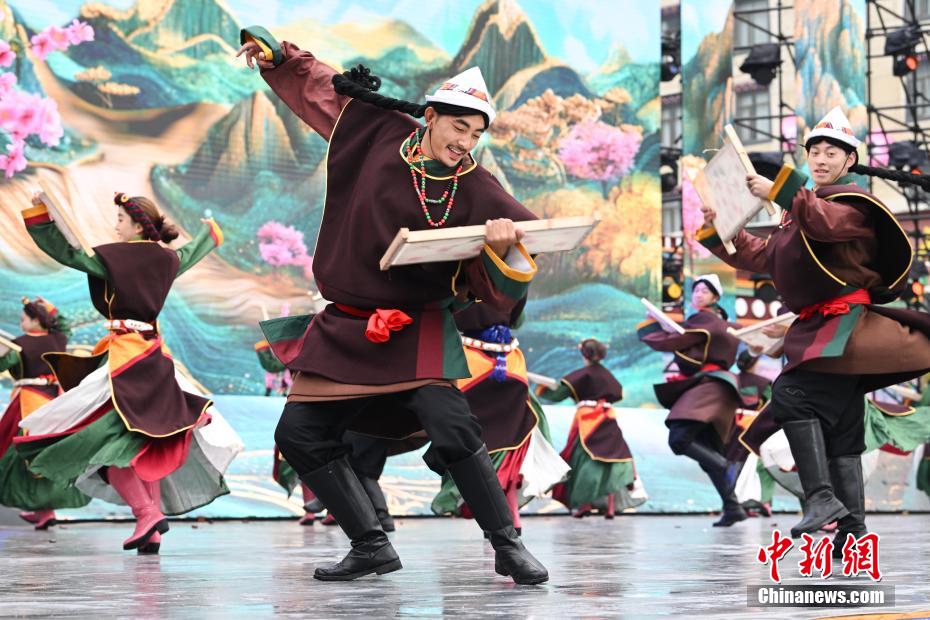 4月1日,西藏自治區(qū)林芝市第二十二屆桃花旅游文化節(jié)波密縣分會場熱鬧開場。本次分會場以“冰川映桃韻波密醉春風”為主題,亮點紛呈。開幕式上,極具特色的西藏原生態(tài)歌舞、非遺藏紙舞蹈,生動演繹出雪域文化的迷人風情;嶺南龍獅與藏族熱巴鼓相遇,剛柔并濟,奏響民族團結的和諧樂章;“冰川王子”與“桃花仙子”領舞,各族民眾翩然起舞,現(xiàn)場氣氛熱烈?;顒蝇F(xiàn)場,除了精彩文藝演出,特色美食、民俗文化展示區(qū)也吸引眾多游客駐足。大家一邊品嘗當?shù)孛朗?,一邊感受民俗文化魅力。?jù)悉,桃花節(jié)將持續(xù)至4月中旬,期間波密縣還安排多場專題活動,誠邀各地游客前來,共赴這場春日浪漫之約。圖為開幕式上表演的舞蹈《鼓韻花開龍獅賀》。中新社記者 貢嘎來松 攝