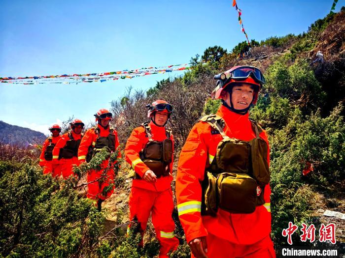 圖為西藏森林消防總隊(duì)隊(duì)員進(jìn)行日常巡護(hù)工作。蔡安 攝