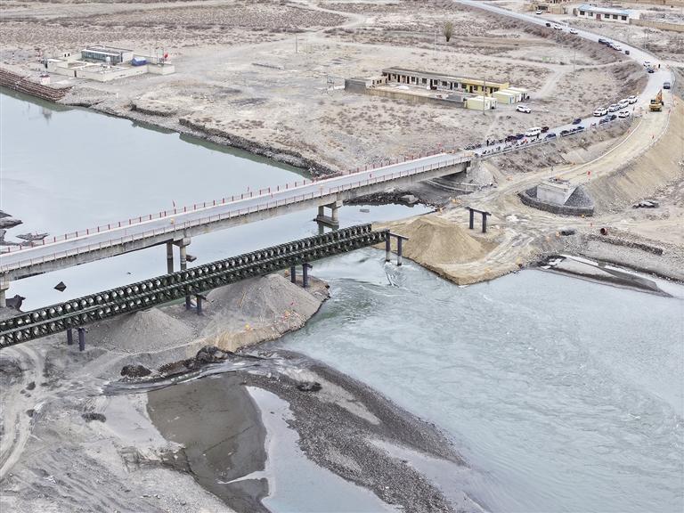 近日,記者從自治區(qū)交通運輸廳了解到,受1月7日定日6.8級地震影響,國道349線上的拉孜雅魯藏布江大橋(簡稱拉孜雅江大橋)損壞嚴(yán)重,封閉禁行,在該橋旁邊設(shè)置的臨時保通便道鋼架橋已完成全部工程量的90%,即將完工通車。