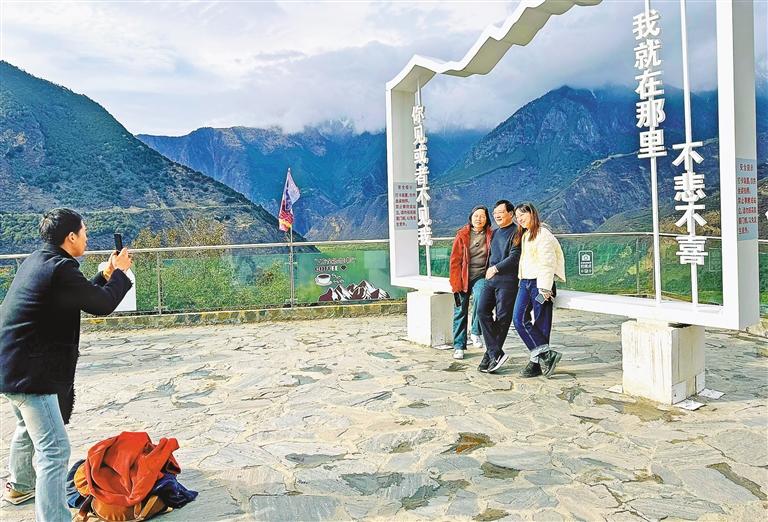 游客在雅魯藏布江大拐彎觀景臺(tái)拍照留念。白瑪澤旺 攝