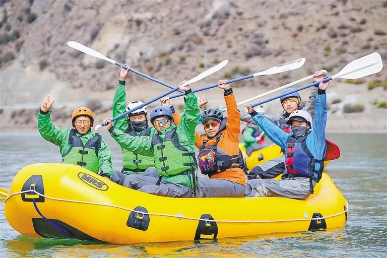 “五一”假期,墨竹工卡唐加鄉(xiāng)騎漂行活動(dòng)舉行,近30位戶外運(yùn)動(dòng)愛好者體驗(yàn)了13公里騎行、4公里徒步、10公里漂流等項(xiàng)目。圖為戶外運(yùn)動(dòng)愛好者體驗(yàn)10公里漂流項(xiàng)目。鹿麗娟 攝