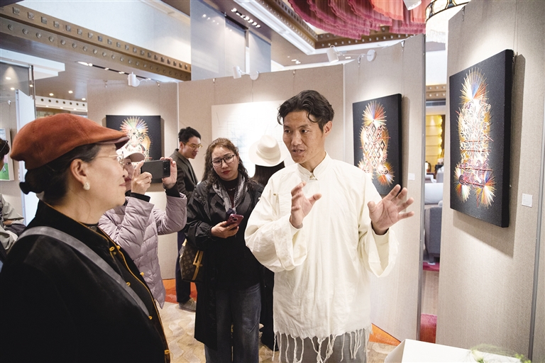 5月2日,“三國(guó)同框 四季如畫 五彩亞?wèn)|——亞?wèn)|縣文化交流及特色產(chǎn)品展銷活動(dòng)”在拉薩香格里拉酒店開幕。亞?wèn)|當(dāng)?shù)氐牟刈逅囆g(shù)家索喃次仁攜手多位區(qū)外藝術(shù)名家,以桃花為媒,通過(guò)藝術(shù)作品展現(xiàn)邊境名城亞?wèn)|的獨(dú)特魅力,以及各族群眾如桃花綻放般團(tuán)結(jié)共進(jìn)、共建美好家園的生動(dòng)圖景,更映照出新時(shí)代邊陲亞?wèn)|的繁榮新貌。