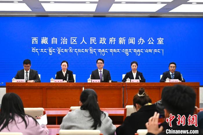 圖為2025年一季度西藏金融運行情況新聞發(fā)布會現(xiàn)場。貢確攝