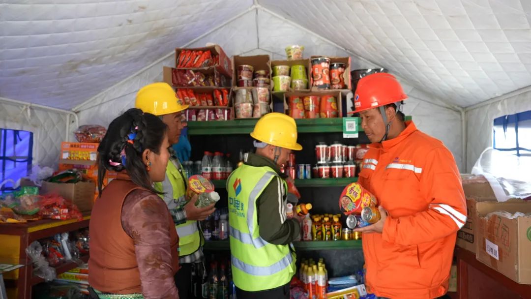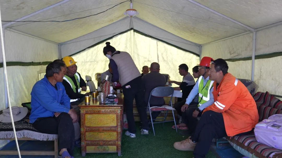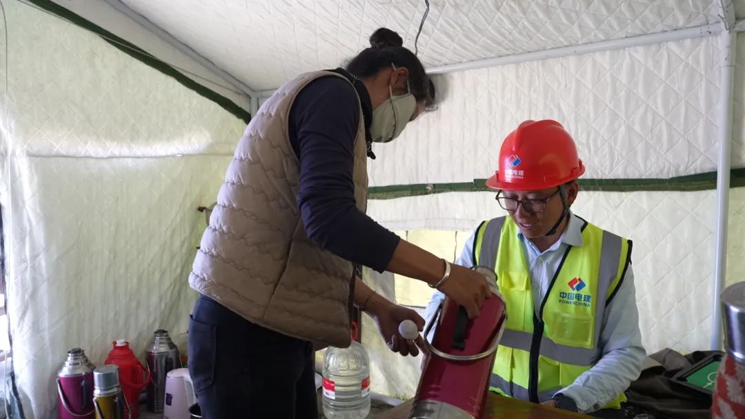 茶館主人巴桑,是村里有名的熱心人??粗┕と藛T為重建家園奔波,采購物資不便,她果斷在項(xiàng)目部生活區(qū)旁開起小賣鋪。與工人們熟絡(luò)后,她又搬來桌椅,搭起簡(jiǎn)易帳篷茶館,只為給異鄉(xiāng)人一個(gè)歇腳放松之處。