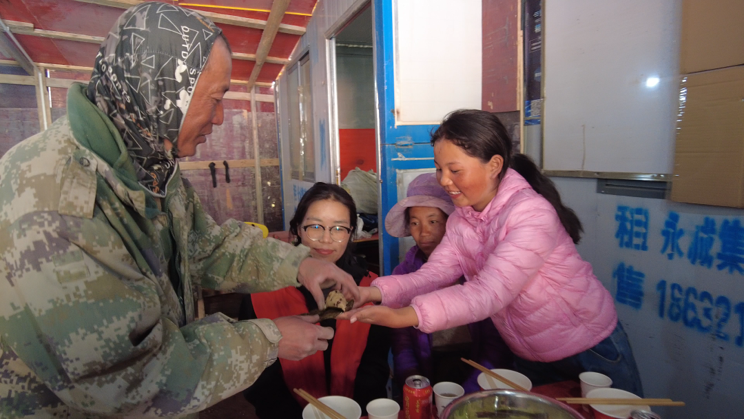 端午前夕,這份情誼化作最美的畫面。5月29日,康孔村飄著酥油香與粽葉青。村民準(zhǔn)備了酥油茶、水果,施工隊(duì)也擺上四菜一湯和粽子。大家圍坐在一起,你給我倒酥油茶,我給你遞粽子,歡聲笑語(yǔ)不斷。
