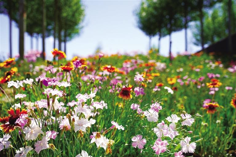 六月的拉薩,陽(yáng)光正好。澄澈藍(lán)天如洗,高遠(yuǎn)而明亮。柳梧大橋下的濱河公園,河畔草地鋪滿各色小花,紅的明艷、粉的柔和、紫的淡雅,肆意綻放在綠意間,仿佛步入印象派大師莫奈的畫布之中。成片盛開(kāi)的各類花卉爭(zhēng)奇斗艷,五彩斑斕的花朵沿著河畔鋪展開(kāi)來(lái),形成一片片絢麗的花海。不同顏色的花朵相互交織,隨風(fēng)搖曳,與藍(lán)天白云、碧綠的河水、遠(yuǎn)處綠意盎然的南山相映成趣,構(gòu)成了一幅花海畫卷。