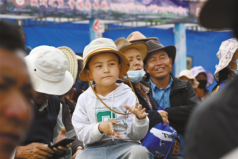活動(dòng)伊始,非遺展演便引爆全場(chǎng)。宏大敘事與細(xì)膩情感交織的格薩爾說(shuō)唱,極具地方特色的諧欽、果諧等傳統(tǒng)歌舞,贏得觀眾陣陣熱烈掌聲。其中,由南木林縣甲措鄉(xiāng)果拉村少兒藏戲隊(duì)帶來(lái)的藏戲《溫巴頓》片段深受觀眾的喜愛。