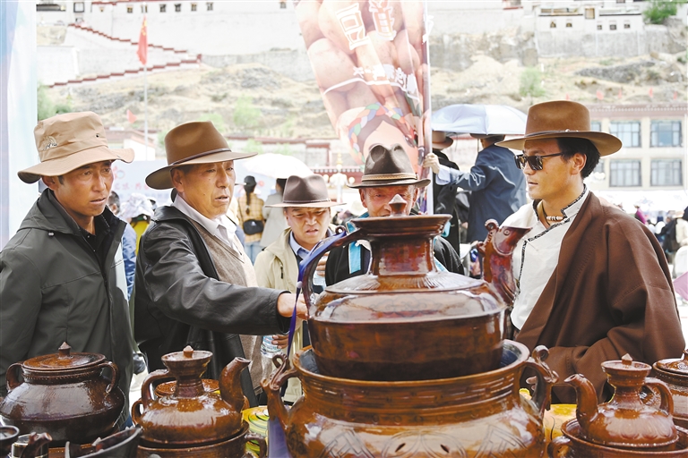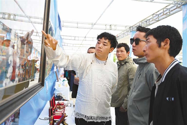 在欣賞視聽盛宴的同時(shí),國(guó)家級(jí)非遺項(xiàng)目江孜卡墊織造技藝、自治區(qū)級(jí)非遺項(xiàng)目牛村陶器制作技藝、市級(jí)非遺項(xiàng)目恰哇編織技藝等50個(gè)非遺項(xiàng)目,以及民族手工業(yè)產(chǎn)品、南木林縣縣級(jí)非遺產(chǎn)品集中展覽展銷,備受消費(fèi)者青睞。各非遺產(chǎn)品展銷點(diǎn)收入不斷、訂單不斷,經(jīng)初步統(tǒng)計(jì),活動(dòng)現(xiàn)場(chǎng)非遺產(chǎn)品銷售總額達(dá)45萬(wàn)余元。
