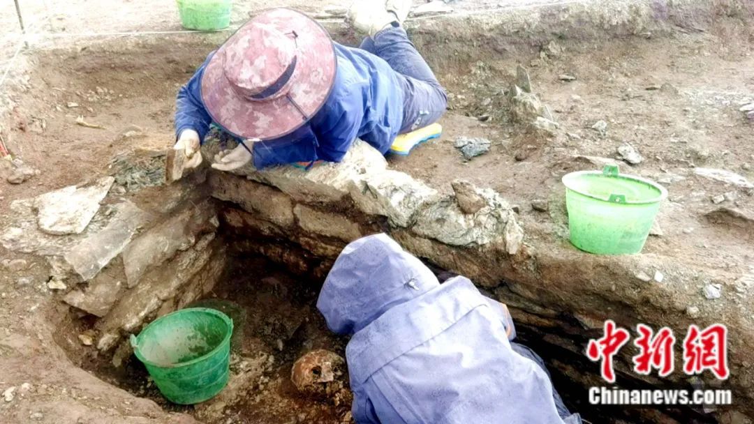 工作人員清理瑪不錯(cuò)遺址墓葬。受訪者供圖