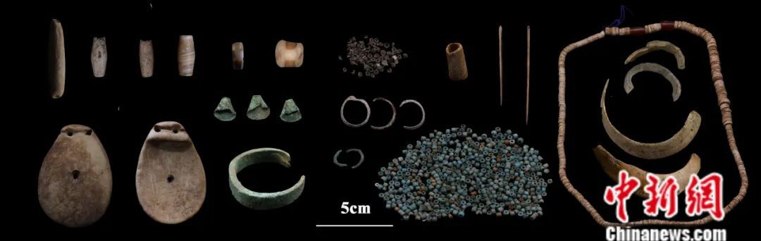 瑪不錯(cuò)遺址第二期遺物(石質(zhì)、骨質(zhì)、金屬裝飾品,骨針、滑石珠、紅玉髓、玻璃珠等)。受訪者供圖