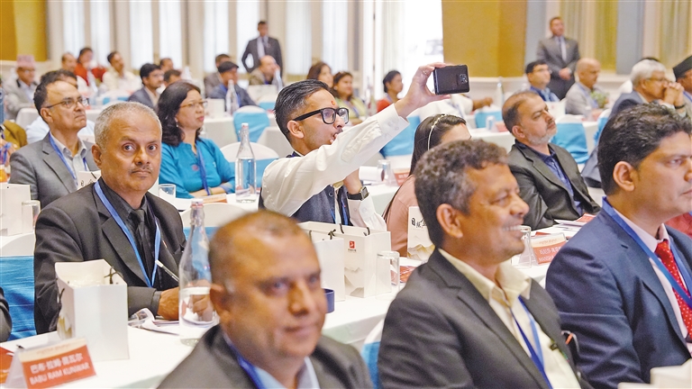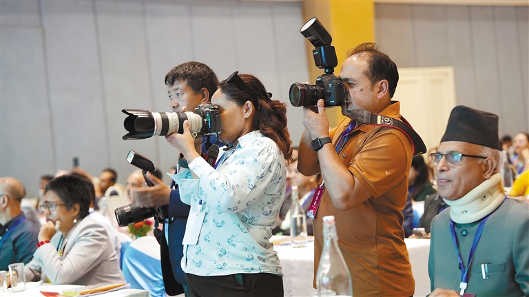 參加活動(dòng)的尼泊爾嘉賓在會場拍攝。