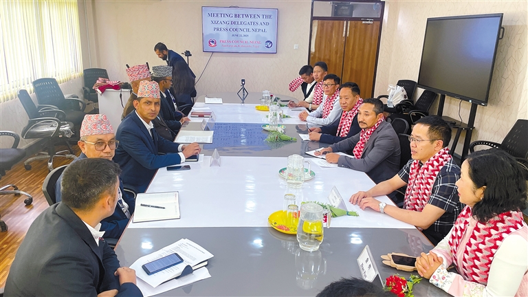 中國西藏代表團(tuán)拜訪尼泊爾坎提普爾媒體集團(tuán)。
