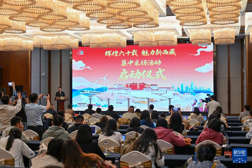 這是7月15日拍攝的“輝煌60載 魅力新西藏”集中采訪活動啟動儀式現(xiàn)場。新華社記者 李鑫 攝