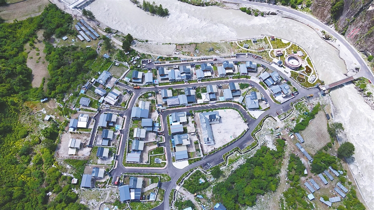 在拉丁雪村,一棟棟藏式裝修風格的新居錯落有致,硬化道路連通村戶,家家戶戶屋頂飄揚的五星紅旗與藍天白云交相輝映。