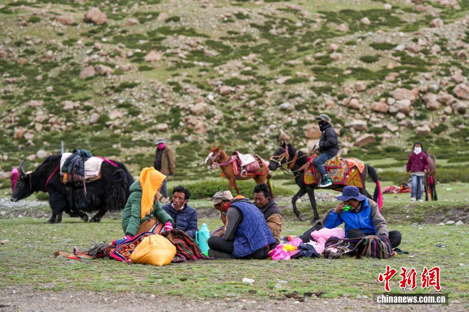 7月21日,在岡仁波齊山腳下,徒步旅行者做出發(fā)前的物資準備工作。岡仁波齊位于西藏阿里地區(qū)普蘭縣境內,是岡底斯山的主峰,也是藏傳佛教的神山之一,每年吸引眾多信徒前往轉山,并衍生出徒步旅行的經(jīng)典路線。每年來自國內外的徒步旅行者為當?shù)貏?chuàng)造就業(yè)機會的同時,也推動了文旅產業(yè)的發(fā)展。中新社記者 張祥毅 攝