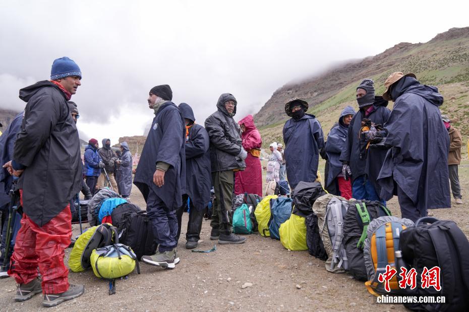 7月21日,在岡仁波齊山腳下,來自印度的徒步旅行者做出發(fā)前的準備工作。岡仁波齊位于西藏阿里地區(qū)普蘭縣境內,是岡底斯山的主峰,也是藏傳佛教的神山之一,每年吸引眾多信徒前往轉山,并衍生出徒步旅行的經(jīng)典路線。每年來自國內外的徒步旅行者為當?shù)貏?chuàng)造就業(yè)機會的同時,也推動了文旅產業(yè)的發(fā)展。中新社記者 張祥毅 攝