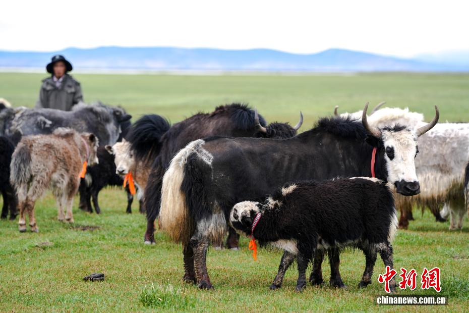 7月22日,在西藏阿里地區(qū)普蘭縣霍爾鄉(xiāng)瑪旁雍錯(cuò)濕地,一頭牦牛在喂養(yǎng)牛犢。為實(shí)現(xiàn)更大的經(jīng)濟(jì)效益,霍爾鄉(xiāng)近年來探索建立牦牛養(yǎng)殖專業(yè)合作社,按當(dāng)?shù)刈匀粭l件合理分配牦牛放牧地點(diǎn),并將牛奶進(jìn)行加工銷售,2023年該合作社的年總收入達(dá)到60余萬元人民幣,帶動(dòng)牧民人均增收2萬余元人民幣。中新社記者 張祥毅 攝