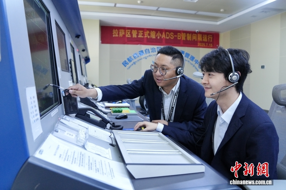 2025年是西藏自治區(qū)成立60周年,也是西藏民航通航60周年。在民航空管領域,管制員肩負指揮飛機運行、保障飛行安全等重要職責,具體分為區(qū)域管制員、塔臺管制員等角色。在位于拉薩貢嘎國際機場的民航西藏空管中心,59名漢族和18名藏族管制員通力合作,以“老帶新”“傳幫帶”,在守護藍天的崗位上譜寫了漢藏一家親的故事。圖為7月22日,區(qū)域管制員強旦(左,藏族)指導見習管制員王軒(右)發(fā)布指令。西藏地處高原地區(qū),氣象復雜多變,對區(qū)域管制員的綜合協(xié)調(diào)應對能力要求高,見習管制員的能力提升離不開師傅的殷切指導。中新社記者 張祥毅 攝