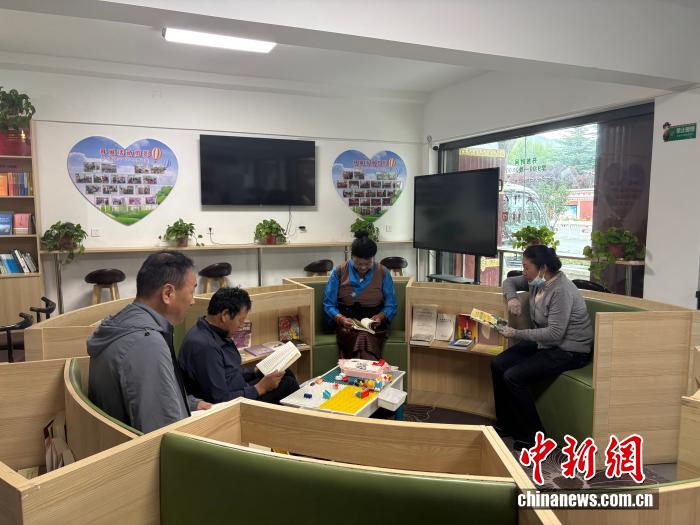 7月25日,拉薩市城關(guān)區(qū)魯固社區(qū)黨群服務(wù)V站內(nèi),當?shù)鼐用裨陂喿x區(qū)看書。 中新網(wǎng)記者 張東方 攝