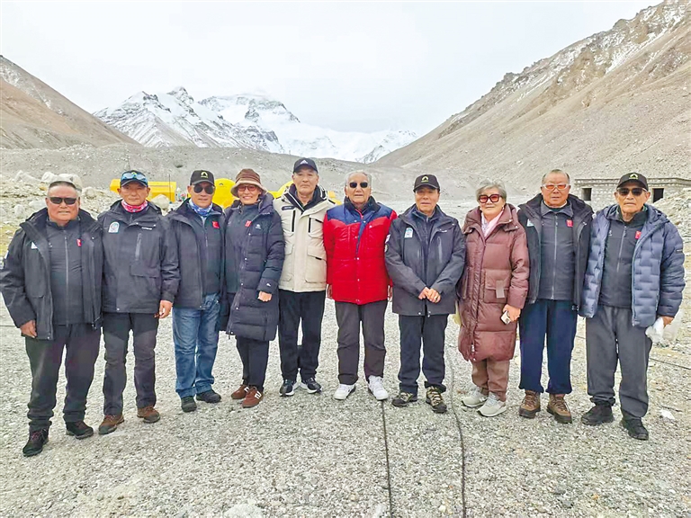 2025年5月6日,登山勇士們參加紀(jì)念中國人再登珠穆朗瑪峰50周年系列活動之“登山勇士緬懷活動”時(shí)合影。記者 鄭璐 攝(除本圖外的其他圖片均由西藏自治區(qū)登山隊(duì)提供)