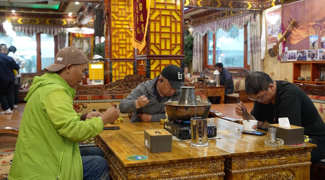 “以前全家靠放牧和種青稞過活,風(fēng)里來雨里去,一年攢不下幾個錢?,F(xiàn)在開了這家藏式餐館,游客多的時候一天能接待上百桌,收入很好?!痹谠髯诖褰?jīng)營餐飲的次央說。