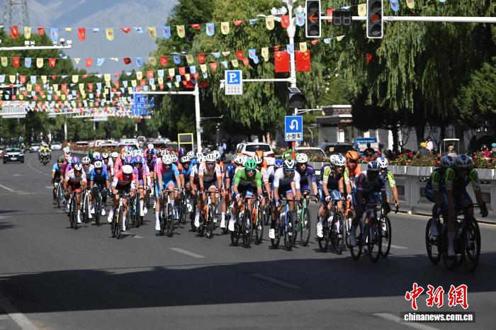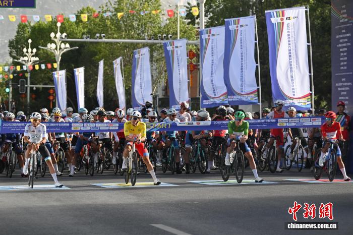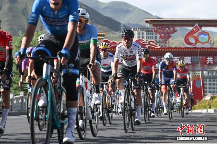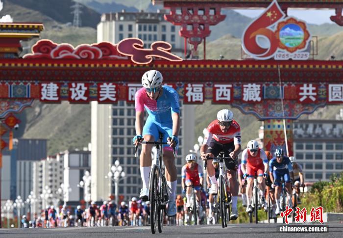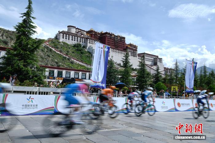 8月9日,2025中國西藏第六屆跨喜馬拉雅國際公路自行車極限賽拉薩賽段(第三賽段)完賽。本賽段為拉薩繞圈賽,起點拉薩市西藏博物館,終點布達拉宮廣場,全程約92.53公里。圖為參賽車手在比賽中。中新社記者 貢嘎來松 攝