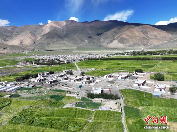 圖為新建成的西藏定日縣森嘎村。(無人機(jī)照片)貢嘎來松 攝