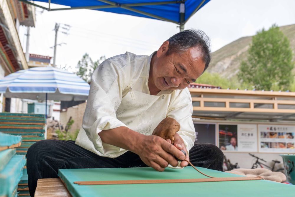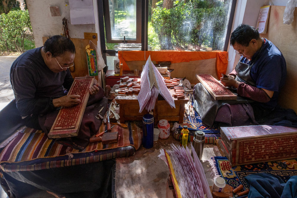 8月6日,雕刻師在工作中。西藏雪巴康雕版印刷制作技藝入選西藏自治區(qū)級(jí)非物質(zhì)文化遺產(chǎn)代表性項(xiàng)目名錄。