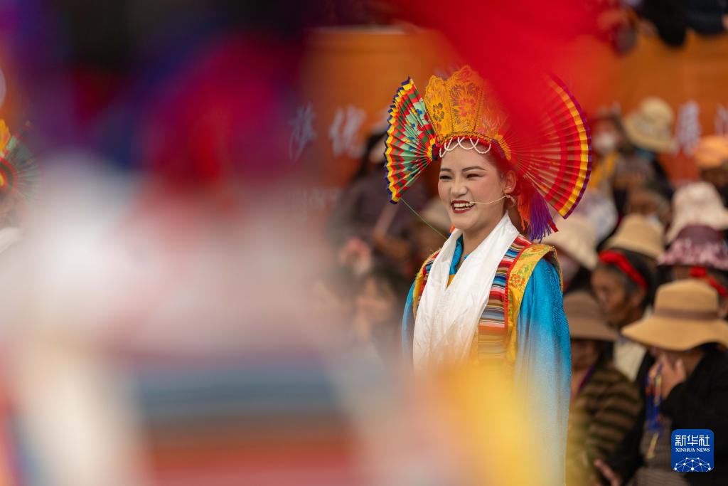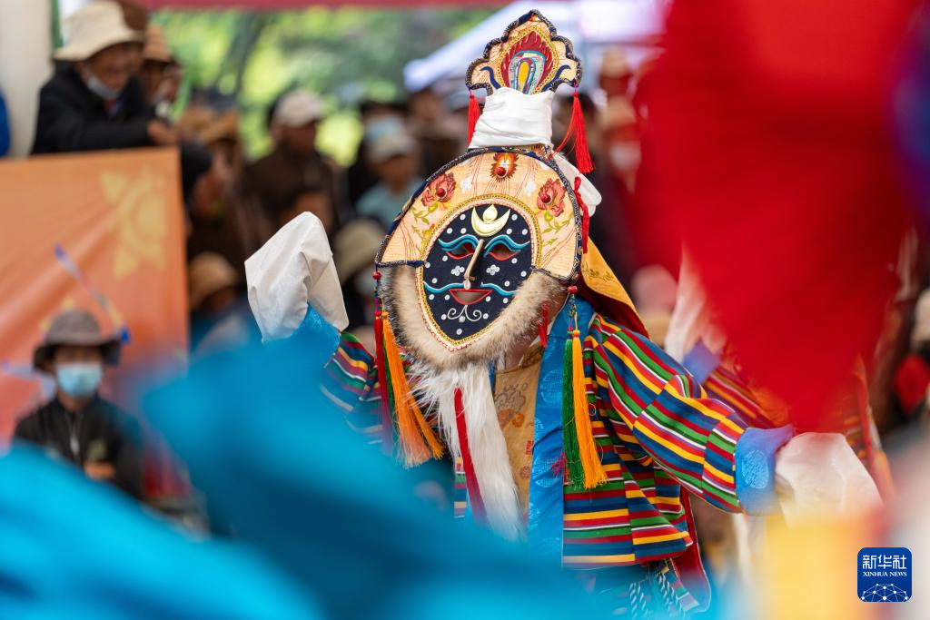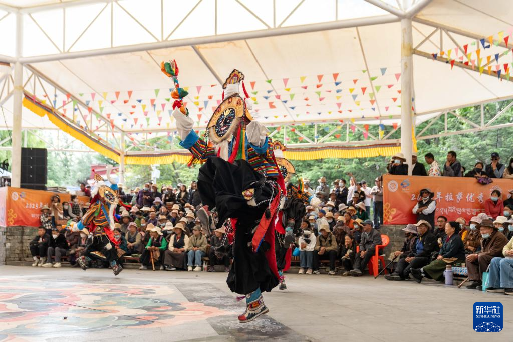 這是8月24日在拉薩宗角祿康公園拍攝的藏戲展演現(xiàn)場(chǎng)。新華社記者 旦增尼瑪曲珠 攝