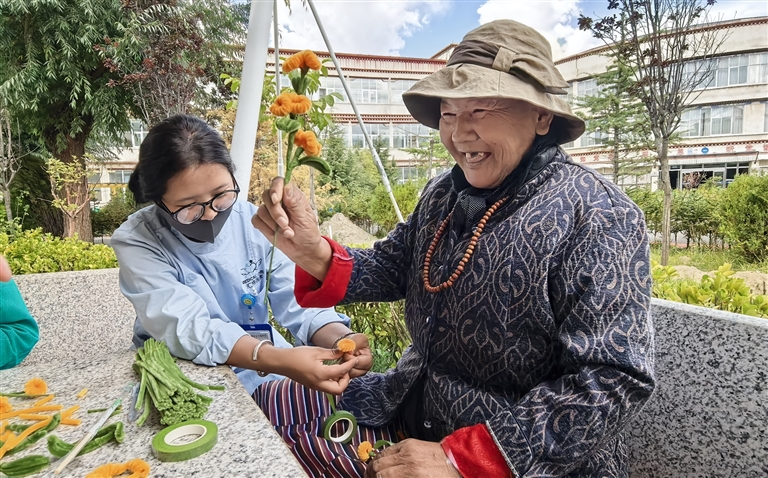 此外,為提升老人們的幸福感,每逢重大節(jié)日,拉薩市社會(huì)福利院都會(huì)舉辦豐富多彩的文藝演出。“每年我們舉辦大大小小的活動(dòng)不少于200次,前幾天我們就在宗角祿康公園舉辦‘紅歌嘹亮頌黨恩,銀齡歌舞展風(fēng)采’活動(dòng),老人們通過(guò)紅歌聯(lián)唱、手工展示等形式,展現(xiàn)了他們積極向上的精神風(fēng)貌。”扎西頓珠表示,拉薩市社會(huì)福利院通過(guò)整合資源、創(chuàng)新服務(wù),開(kāi)展的各類(lèi)文化活動(dòng)有效豐富了老年人的精神文化生活,滿足了老年人對(duì)養(yǎng)老院生活品質(zhì)的需求。