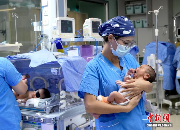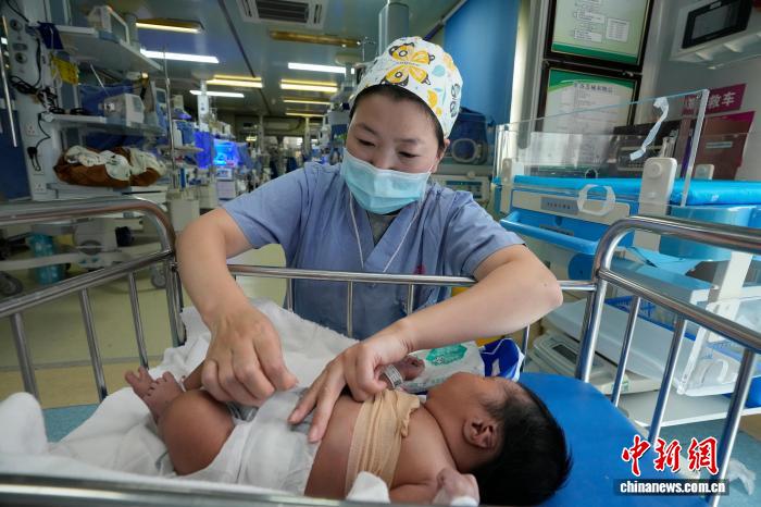 圖為9月5日,西藏阜康醫(yī)院新生兒科內(nèi),護(hù)士正在安撫新生兒。李林 攝
